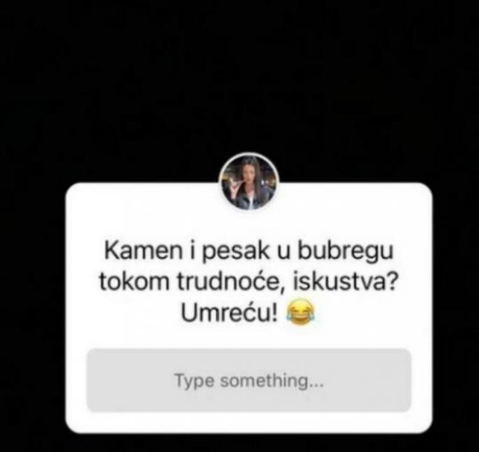 – Kamen i pjesak u bubregu tokom trudnoće, iskustva? Umrijeću! – napisala je Tara i zamolila pratioce da joj pišu svoja iskustva.